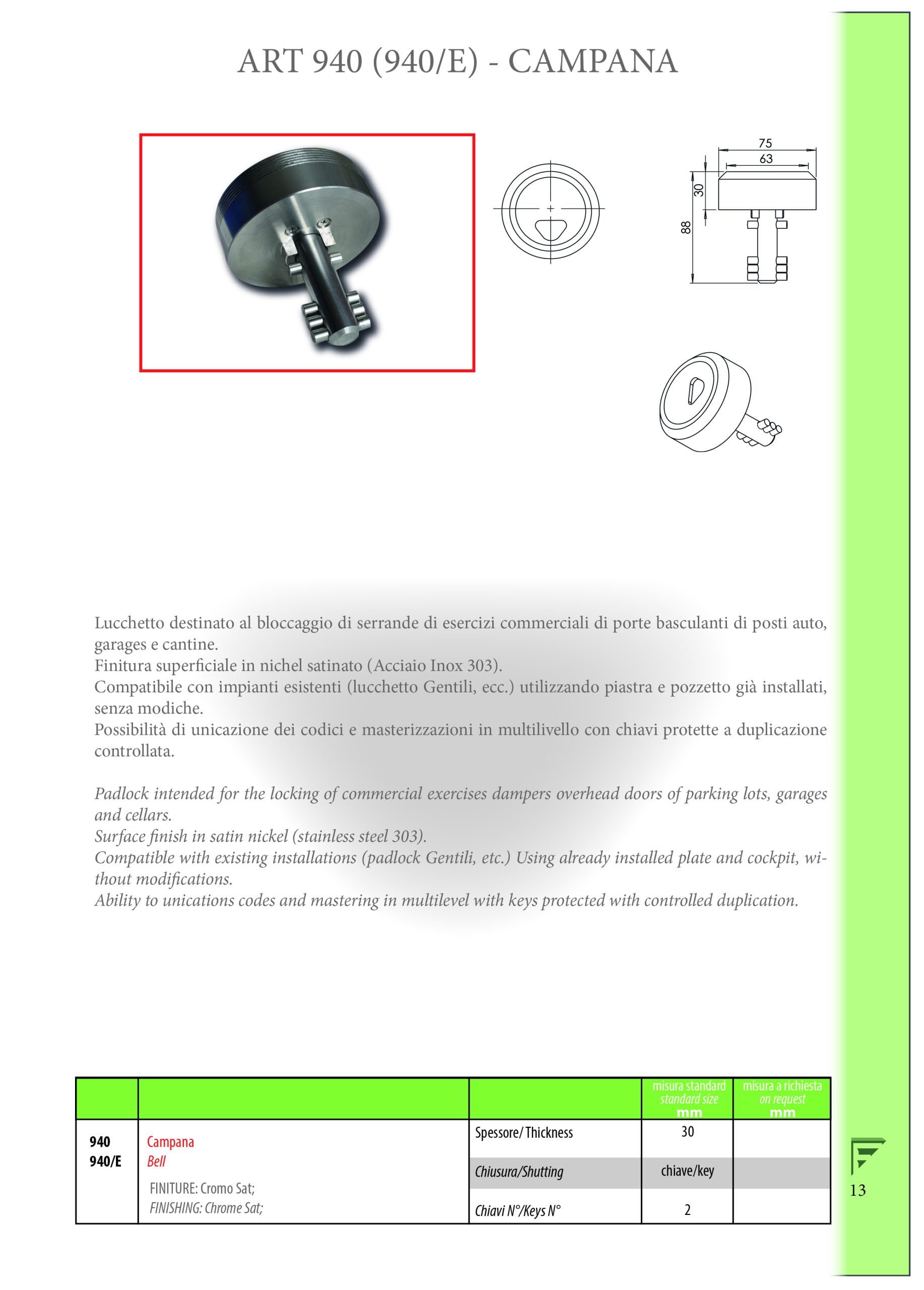 Luchetto per la protezione di serrande scorrevoli e porte basculanti. Apertura/chiusura con chiave protetta da Security Card.